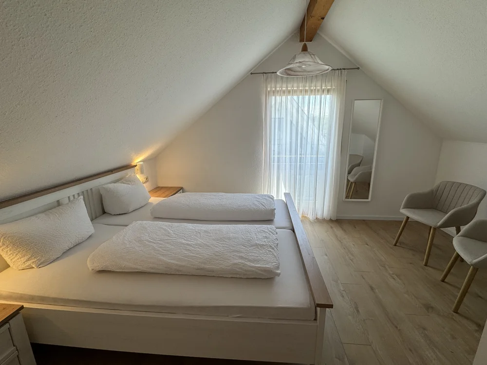 Herrliche Dreizimmmer-Ferienwohnung auf 2 Ebenen mit 2 Schlafzimmern, überdachtem Südbalkon und Seesicht für 2-5 Personen.